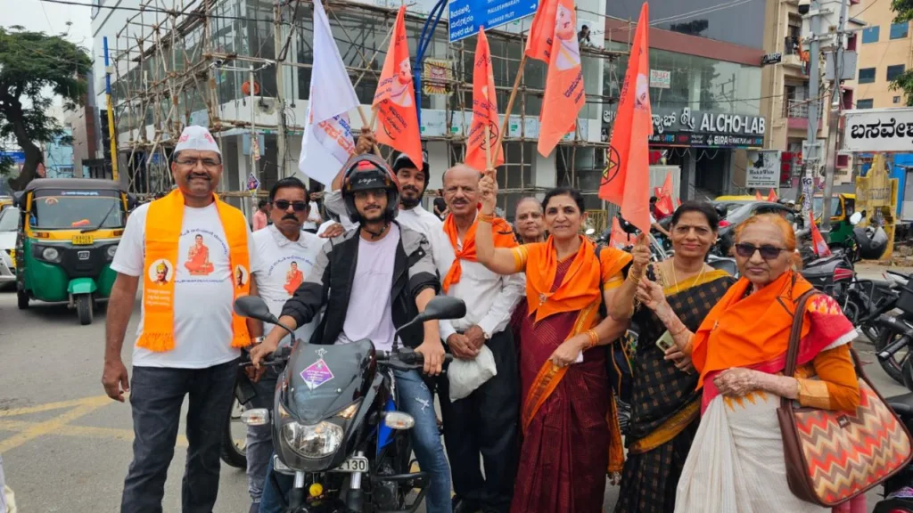 ಅಭಿಯಾನ: ಬೆಂಗಳೂರಿನಲ್ಲಿ ಬಸವಭಕ್ತರ ಸಂಭ್ರಮದ ಬೈಕ್ ರ‍್ಯಾಲಿ
