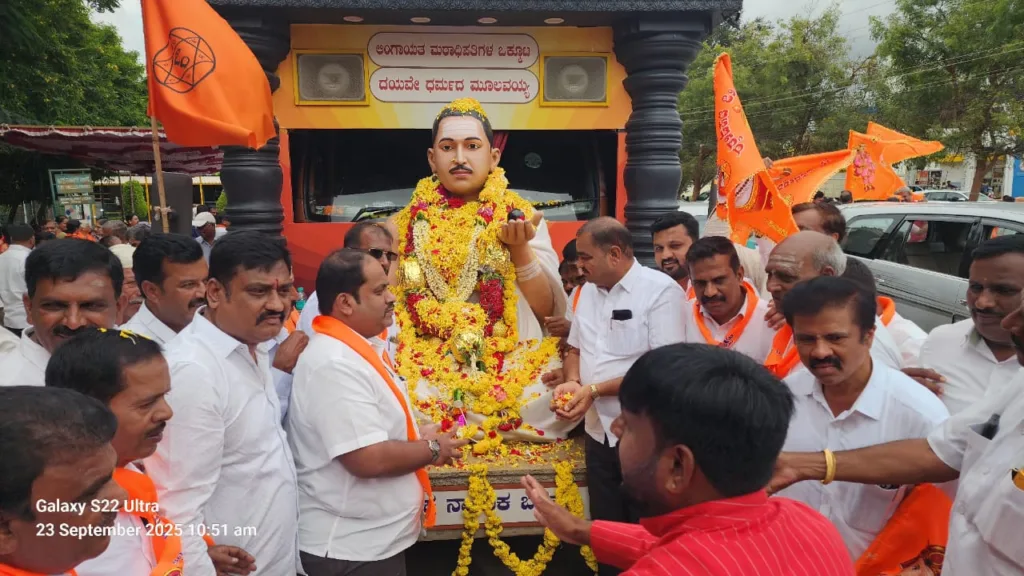 ನಿವೇದಿತಾ ನಗರ ಪಾರ್ಕ್ ನಲ್ಲಿ ಬಸವ ರಥಕ್ಕೆ ಪೂಜ್ಯರು, ಗಣ್ಯರು ಸ್ವಾಗತ ಮಾಡಿಕೊಂಡರು.