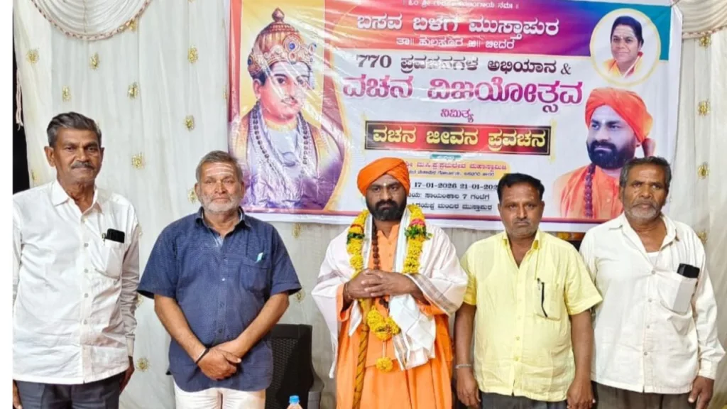 ಮುಸ್ತಾಪುರ ಗ್ರಾಮದಲ್ಲಿ ಬಸವ ಬಳಗದ ವತಿಯಿಂದ 770 ಪ್ರವಚನಗಳ ಅಭಿಯಾನ ಹಾಗೂ ವಚನ ವಿಜಯೋತ್ಸವ ಕಾರ್ಯಕ್ರಮದ ನಿಮಿತ್ಯ ಹಮ್ಮಿಕೊಂಡಿರುವ ಐದು ದಿನಗಳ ವಚನ ಜೀವನ ಪ್ರವಚನದ ಕಾರ್ಯಕ್ರಮದ ಸಾನಿಧ್ಯ ವಹಿಸಿ ಮಾತನಾಡಿದರು.