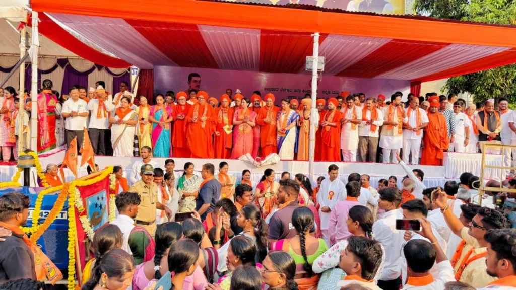 ರಾಣಿ ಕಿತ್ತೂರು ಚೆನ್ನಮ್ಮ ವೃತ್ತದಿಂದ ಆರಂಭವಾದ ಭವ್ಯ ಮೆರವಣಿಗೆಯು ಕಾಕತಿ ವೇಸ್ ಮೂಲಕ ಹಾಯ್ದು ಶನಿವಾರ ಕೂಟ, ಗಣಪತಿ ಗಲ್ಲಿ, ಮಾರುತಿ ಗಲ್ಲಿ, ಕಿರ್ಲೋಸ್ಕರ್ ರಸ್ತೆ ಮೂಲಕ ಸಾಗಿ ಲಿಂಗರಾಜ ಕಾಲೇಜಿನ ಆವರಣದಲ್ಲಿ ಮುಕ್ತಾಯಗೊಂಡಿತು.