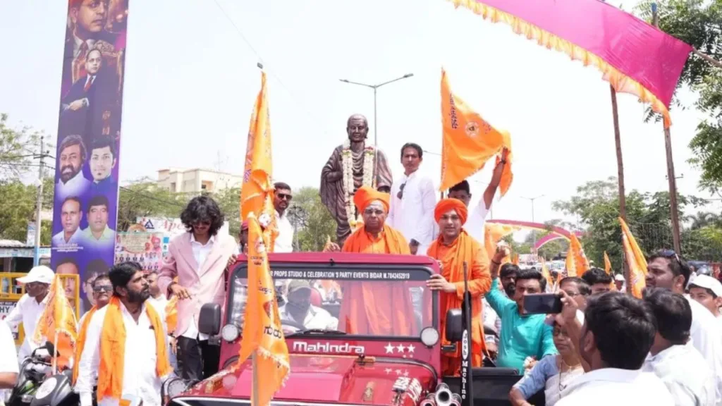 ರ್ಯಾಲಿಗೆ ಗುರುಬಸವ ಪಟ್ಟದ್ದೇವರ ಸಾನಿಧ್ಯದಲ್ಲಿ ಯುವ ಮುಖಂಡ ಪ್ರಸನ್ನ ಖಂಡ್ರೆ ಬಸವ ಧ್ವಜ ಹಾರಿಸುವ ಮೂಲಕ ಚಾಲನೆ ನೀಡಿದರು.