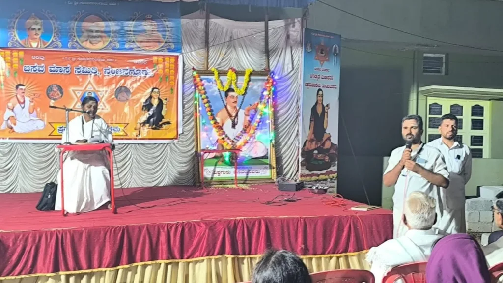 ಬಸವ ಮಾಸ ಸಮಿತಿ ವತಿಯಿಂದ ನಡೆಯುತ್ತಿರುವ ಕಾರ್ಯಕ್ರಮದ ಮೊದಲ ದಿನ ವಿಜಯಪುರ ಜಿಲ್ಲೆಯ ಅಕ್ಕನಾಗಮ್ಮ ಮಹಾಮನೆ ಮಠದ ಪೂಜ್ಯ ಚಂದ್ರಕಲಾ ಮಾತಾಜಿ ಅವರು ಪ್ರವಚನ ನೀಡಿದರು.