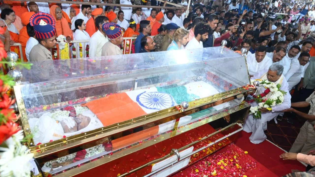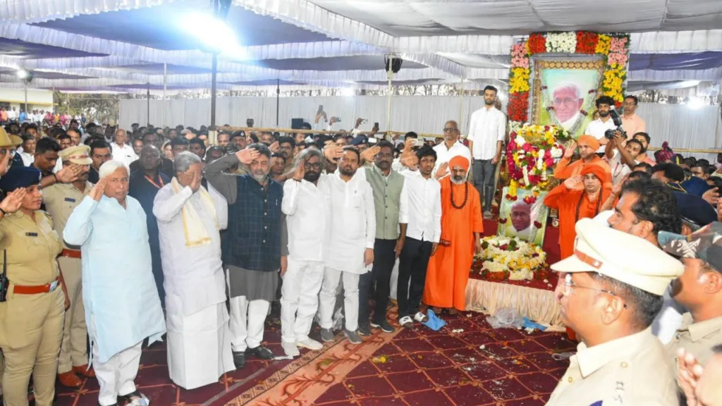 ಈ ಸಂದರ್ಭದಲ್ಲಿ ಉಪ ಮುಖ್ಯಮಂತ್ರಿ ಡಿ.ಕೆ. ಶಿವಕುಮಾರ್​, ಸಚಿವರಾದ ಎಂ.ಬಿ. ಪಾಟೀಲ್, ಕೆ.ಜೆ. ಜಾರ್ಜ್, ಲಕ್ಷ್ಮೀ ಹೆಬ್ಬಾಳಕರ್, ಹೆಚ್.ಕೆ. ಪಾಟೀಲ್, ಪ್ರಿಯಾಂಕ್ ಖರ್ಗೆ, ಬಿಜೆಪಿ ರಾಜ್ಯಾಧ್ಯಕ್ಷ ಬಿ.ವೈ. ವಿಜಯೇಂದ್ರ, ಸಂಸದ ಬಸವರಾಜ ಬೊಮ್ಮಾಯಿ ಹಾಗೂ ಜಿಲ್ಲಾಡಳಿತದ ಪರವಾಗಿ ಜಿಲ್ಲಾಧಿಕಾರಿ ಶಿಲ್ಪಾ ಶರ್ಮಾ, ಜಿಲ್ಲಾ ಪೊಲೀಸ್​ ವರಿಷ್ಠಾಧಿಕಾರಿ ಪ್ರದೀಪ್ ಗುಂಟಿ, ಜಿಪಂ ಸಿಇಒ ಡಾ.ಗಿರೀಶ್ ಬದೋಲೆ ಇತರರು ಅಗಲಿದ ಚೇತನಕ್ಕೆ ಪುಷ್ಪಗುಚ್ಛವಿರಿಸಿ ಅಂತಿಮ ಗೌರವ ಸಲ್ಲಿಸಿದರು.