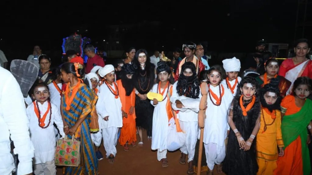 ಮಕ್ಕಳು ಅಕ್ಕಮಹಾದೇವಿ ಸೇರಿದಂತೆ ಶಿವಶರಣರ ಪೋಷಾಕು ಧರಿಸಿ ಗಮನ ಸೆಳೆದರು.