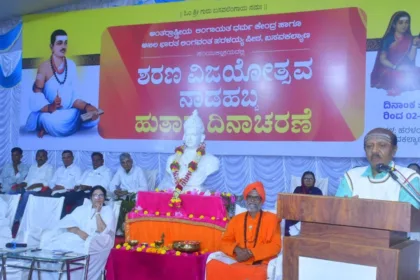 ಚಿತ್ರದುರ್ಗ ಶ್ರೀ ಮುರುಘಾಮಠದ ಅನುಭವ ಮಂಟಪದಲ್ಲಿ ಶುಕ್ರವಾರ ಶರಣ ಸಂಸ್ಕೃತಿ ಉತ್ಸವದ ಸಮಾರೋಪ ಮತ್ತು ಸಂಗೀತ ಕಾರ್ಯಕ್ರಮವನ್ನು ಆಯೋಜಿಸಲಾಗಿತ್ತು. ಮುರುಘರಾಜೇಂದ್ರ ಬೃಹನ್ಮಠ ಹಾಗೂ ಎಸ್.ಜೆ.ಎಂ. ವಿದ್ಯಾಪೀಠದ ಆಡಳಿತಮಂಡಳಿಯ ಸದಸ್ಯರಾದ ಡಾ. ಬಸವಕುಮಾರ ಸ್ವಾಮೀಜಿ ಮಾತನಾಡಿ, ಈ ಬಾರಿಯ ವಚನ ಝೇಂಕಾರದಲ್ಲಿ ಐದು…