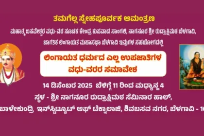 ಕಲಬುರಗಿ:ಬಸವ ಸಮಿತಿಯ ಅಕ್ಕನ ಬಳಗದ ವತಿಯಿಂದ ಮಹಾದೇವಿ ಅಕ್ಕಗಳ ೧೫ನೇ ಸಮ್ಮೇಳನ 13, 14 ಡಿಸೆಂಬರ್…