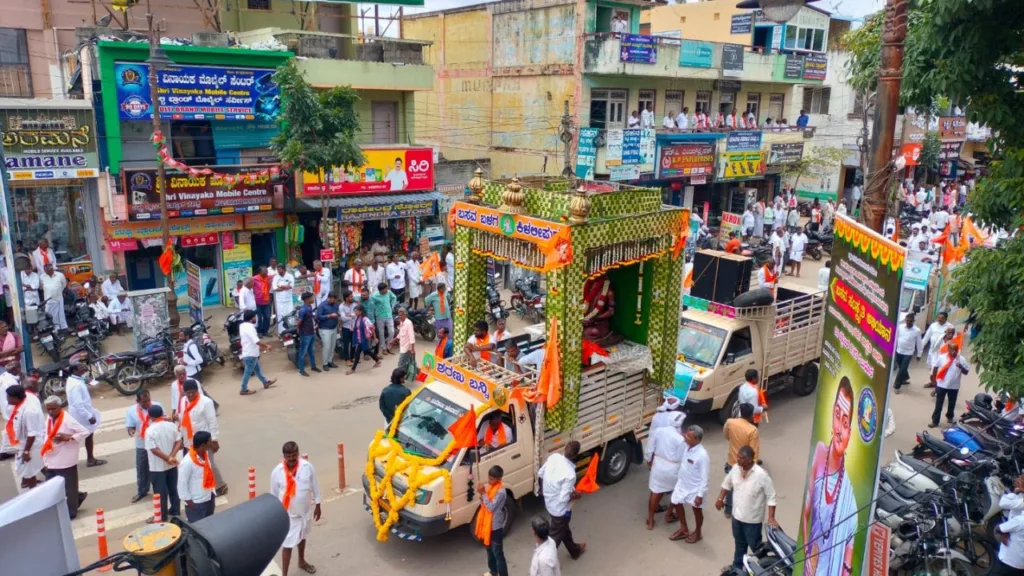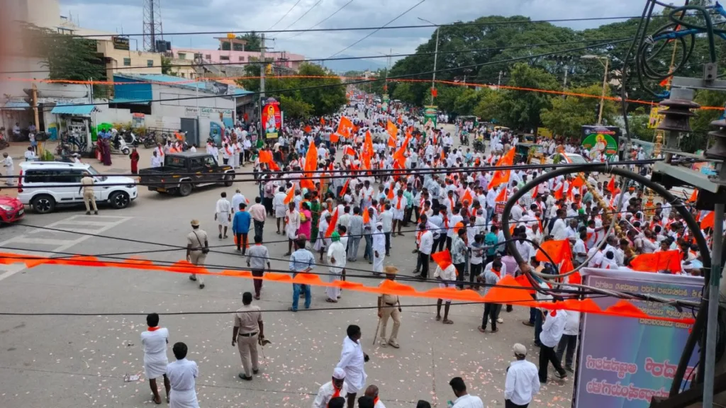 2 ಕಿ.ಮೀ. ಉದ್ದದ ಸಾವಿರಾರು ಬಸವಭಕ್ತರ ಬೃಹತ್ ಮೆರವಣಿಗೆ.
