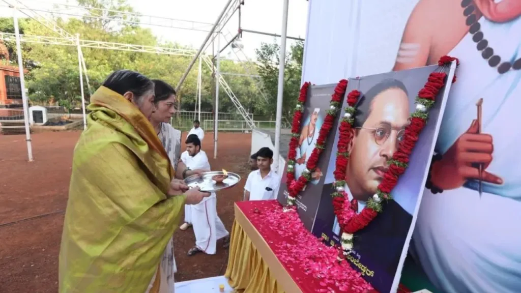 ಸಮಾರಂಭದ ಸಾನಿಧ್ಯ ವಹಿಸಿ, ಪೂಜ್ಯ ಡಾ. ಬಸವಲಿಂಗ ಪಟ್ಟದ್ದೇವರು ಮಾತನಾಡುತ್ತ, ಡಾ. ಬಾಬಾಸಾಹೇಬ ಅಂಬೇಡ್ಕರ್ ಅವರ ಜೀವನ ಆದರ್ಶ ಎಲ್ಲರಿಗೂ ಮಾದರಿಯಾದದ್ದು. ಅವರು ಜೀವನದ್ದುದಗಲ್ಲಕ್ಕೂ ನೋವುಗಳನ್ನು ಅನುಭವಿಸಿ ಸಮಾಜಕ್ಕೆ ಬೆಳಕು ನೀಡಿದ ಮಹಾಪುರುಷರು. ಅವರ ಸಾಮಾಜಿಕ ಕಳಕಳಿ, ಗ್ರಂಥಪ್ರೇಮ, ಅರ್ಥಶಾಸ್ತ್ರದಲ್ಲಿದ್ದ ಪ್ರಾವಿಣ್ಯತೆ ಆದರ್ಶಪ್ರಾಯವಾದದ್ದು.