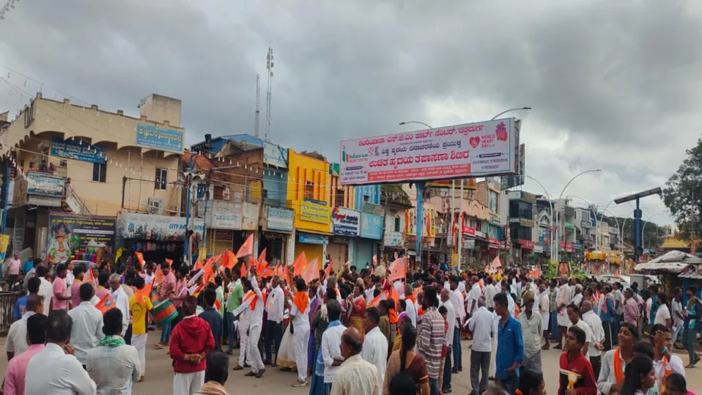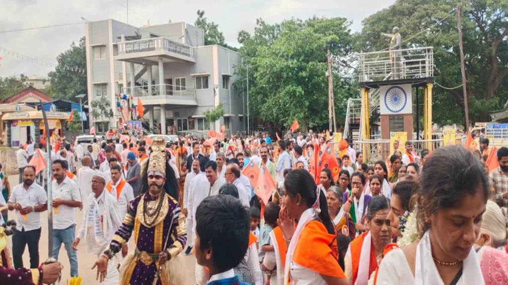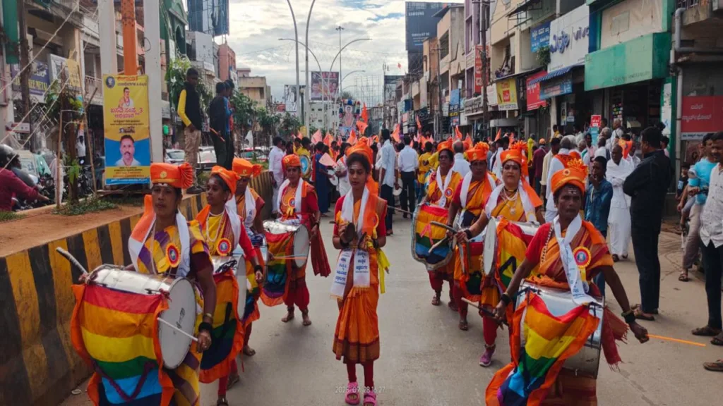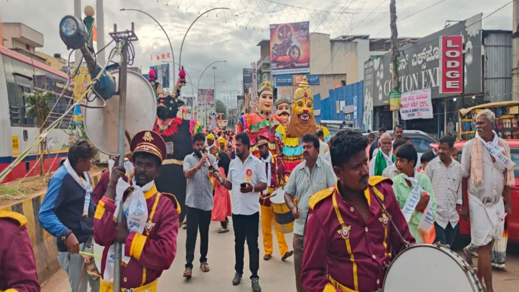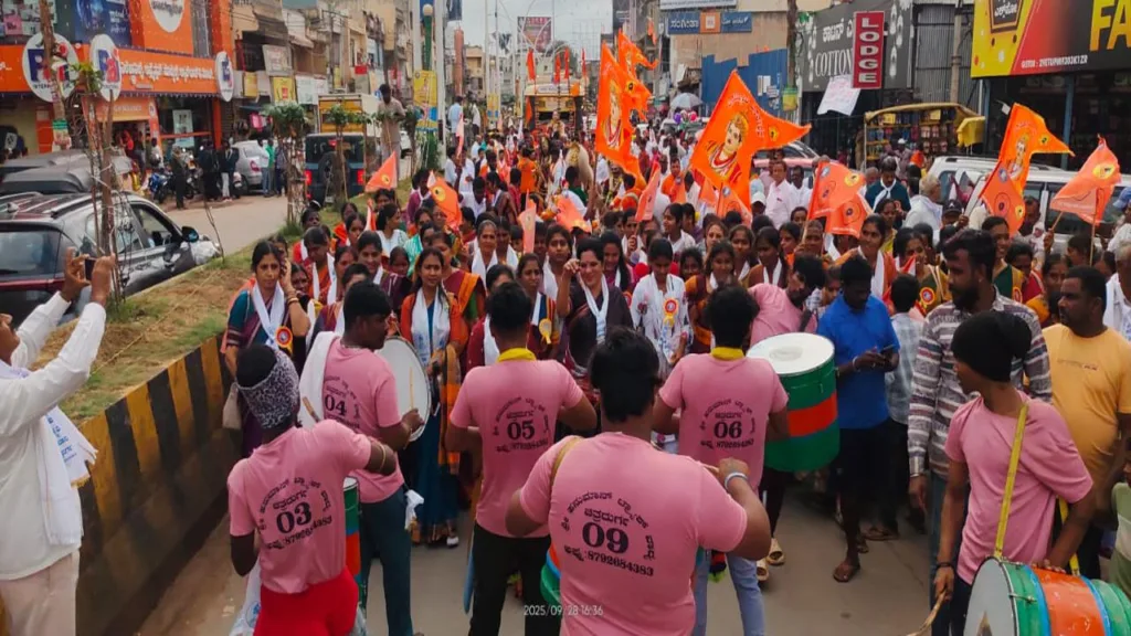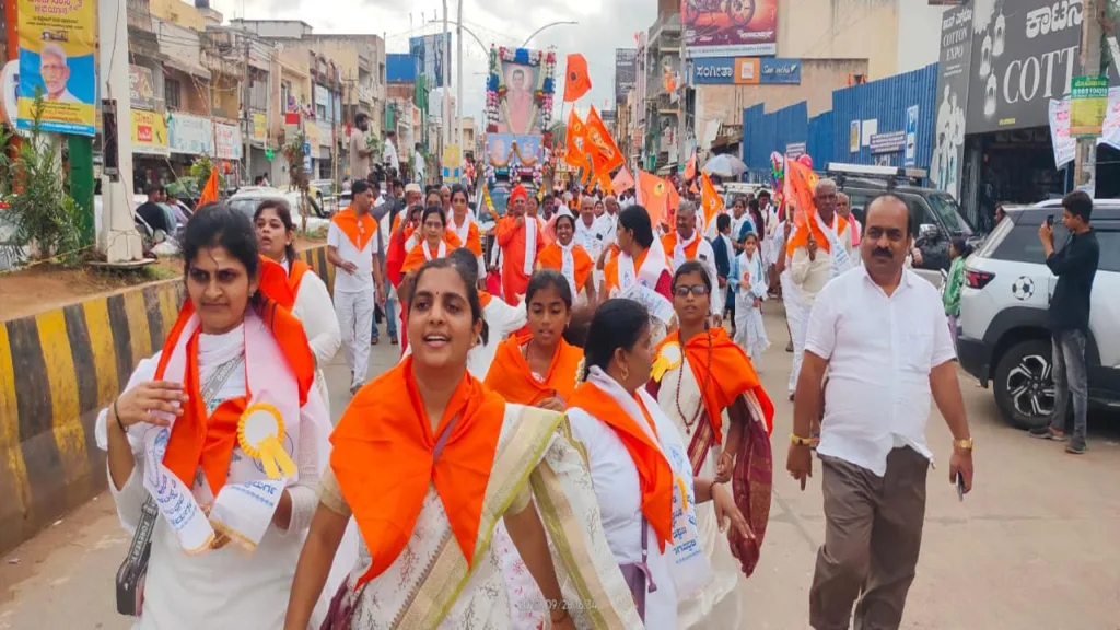 ನೀಲಕಂಠೇಶ್ವರ ದೇವಸ್ಥಾನದಿಂದ ಆರಂಭಗೊಂಡ ಬೃಹತ್ ಮೆರವಣಿಗೆ, ಪಾದಯಾತ್ರೆ. ಒನಕೆ ಓಬವ್ವ ವೃತ್ತದವರೆಗೆ ಸಾಗುವುದು.