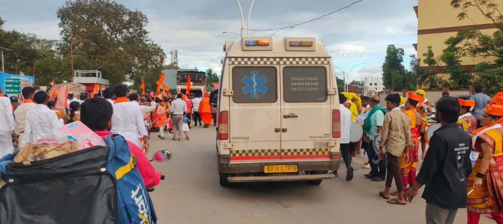 ಆಂಬುಲೆನ್ಸ್ ಗೆ ದಾರಿ ಬಿಟ್ಟುಕೊಟ್ಟ ಬಸವಭಕ್ತರು.