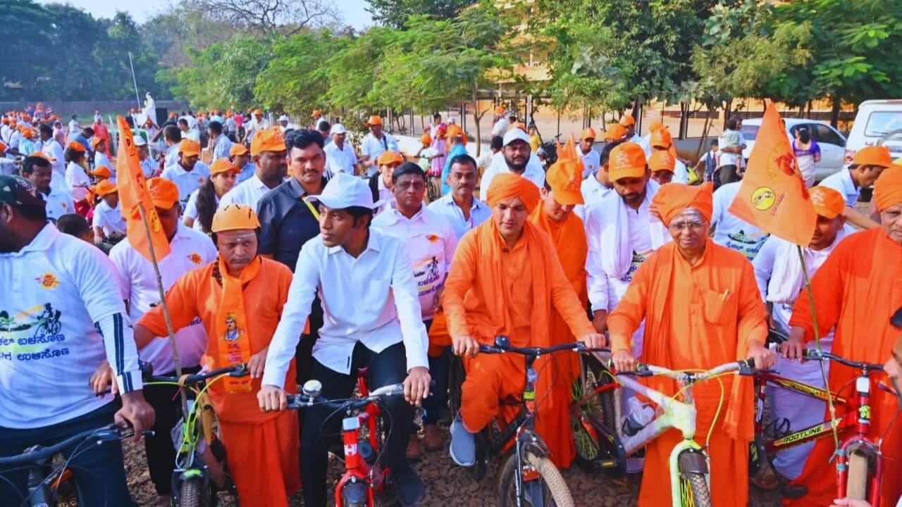 ಬಸವಕಲ್ಯಾಣದಲ್ಲಿ ೪೬ನೇ ಶರಣ ಕಮ್ಮಟ ಅನುಭವಮಂಟಪ ಉತ್ಸವ-೨೦೨೫ ರ ನಿಮಿತ್ಯ ಹಮ್ಮಿಕೊಂಡಿರುವ ಸೈಕಲ್ ಜಾಥಾ ಕಾರ್ಯಕ್ರಮವನ್ನು ನಾಡೋಜ ಪೂಜ್ಯ ಡಾ. ಬಸವಲಿಂಗ ಪಟ್ಟದ್ದೇವರ ಸನ್ನಿಧಾನದಲ್ಲಿ ಜರುಗಿತು.