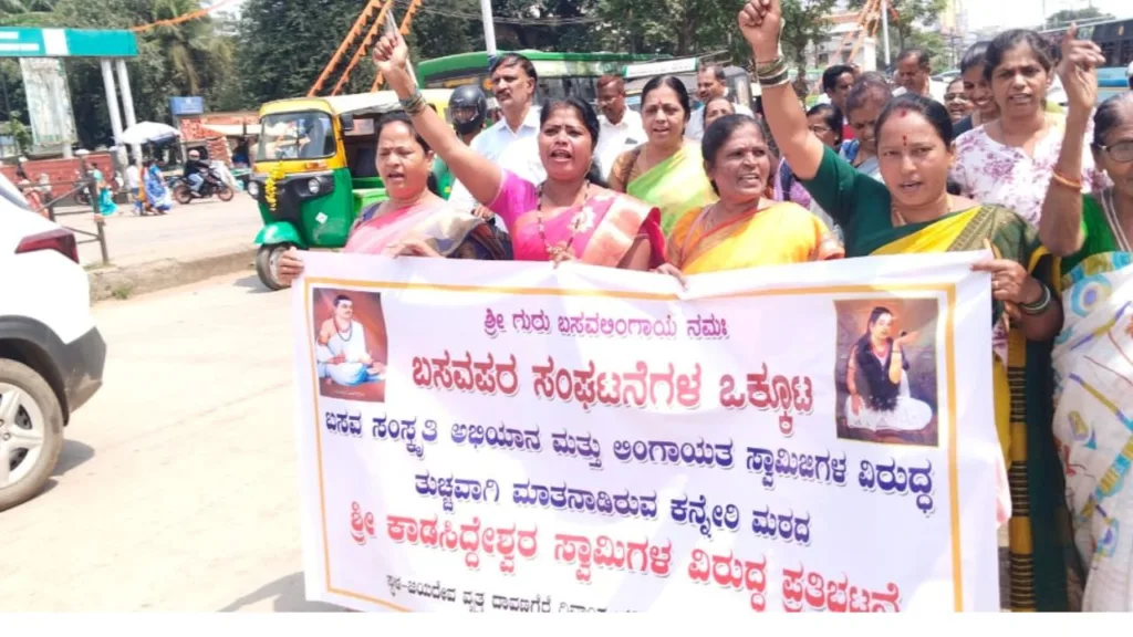 ದಾವಣಗೆರೆ ಲಿಂಗಾಯತ ಮಠಾಧೀಶರು ಮತ್ತು ಬಸವ ಸಂಸ್ಕೃತಿ ಅಭಿಯಾನವನ್ನು ಅವಹೇಳನ ಮಾಡಿರುವ ಕನ್ನೇರಿ ಕಾಡಸಿದ್ದೇಶ್ವರ ಸ್ವಾಮಿಯನ್ನು ಗಡಿಪಾರು ಮಾಡುವಂತೆ ಆಗ್ರಹಿಸಿ ಬಸವಪರ ಸಂಘಟನೆಗಳ ಸದಸ್ಯರು ಇಂದು ನಗರದ ಜಯದೇವ ವೃತ್ತದ ಬಳಿ ಪ್ರತಿಭಟನೆ ನಡೆಸಿದವು. ಕನ್ನೇರಿ ಸ್ವಾಮಿಯ ಹಿಂದಿರುವ ಶಕ್ತಿಗಳು ಅವರ ಬಾಯಿಯಲ್ಲಿ ಈ ರೀತಿಯ ಹೇಳಿಕೆ ನೀಡಿಸಿವೆ. ಅವರಿಂದ ಕ್ಷಮೆ ಕೇಳಿಸಿ ಪ್ರಯೋಜನವಿಲ್ಲ. ಲಕ್ಷಾಂತರ ಜನ ಲಿಂಗಾಯತರು ಕನ್ನೇರಿ ಚಲೋ ಎಂದು ಹೋಗಿ ಅಲ್ಲಿ ಮಠದಿಂದ ಅವರನ್ನು ಉಚ್ಚಾಟಿಸುವಂತೆ ಮಾಡಬೇಕು ಎಂದು ಮುಖಂಡರು ಆಕ್ರೋಶ ವ್ಯಕ್ತಪಡಿಸಿದರು. … Continue reading ದಾವಣಗೆರೆ: ಕನ್ನೇರಿ ಸ್ವಾಮಿ ಮೇಲೆ ಕ್ರಮ ಜರುಗಿಸದಿದ್ದರೆ ರಾಜ್ಯಾದ್ಯಂತ ಹೋರಾಟ