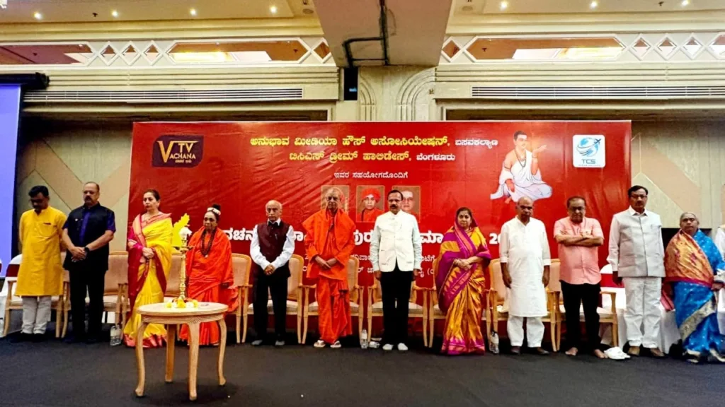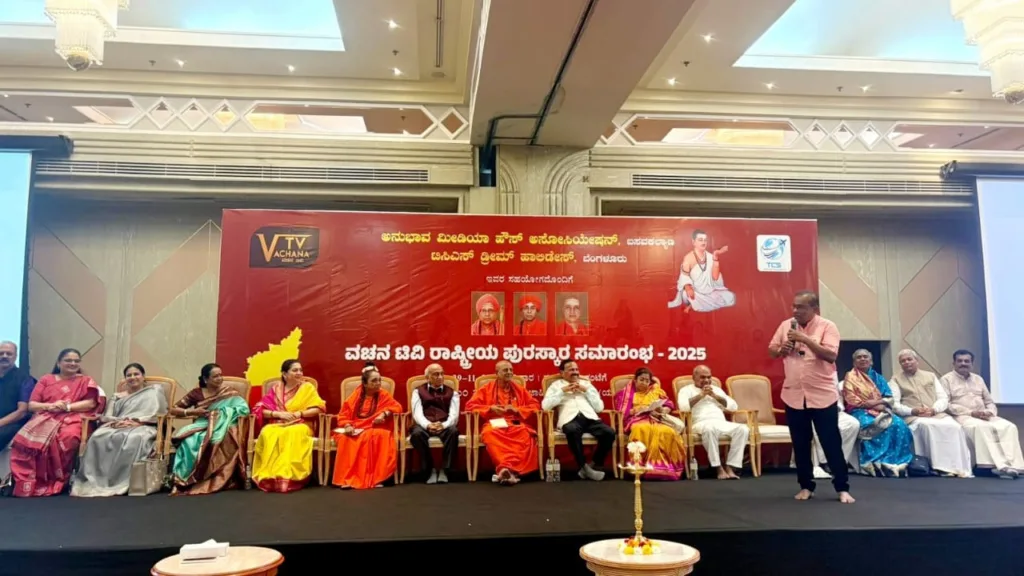 ನಗರದ ‘ಮಿಲೇನಿಯಂ ಪ್ಲಾಜಾ’ದಲ್ಲಿ ಅನುಭವ ಮೀಡಿಯಾ ಹೌಸ್ ಅಸೋಸಿಯೇಷನ್ (ವಚನ ಟಿವಿ)ನ ರಾಷ್ಟ್ರೀಯ ಪುರಸ್ಕಾರ ಸಮಾರಂಭ ನಡೆಯಿತು.