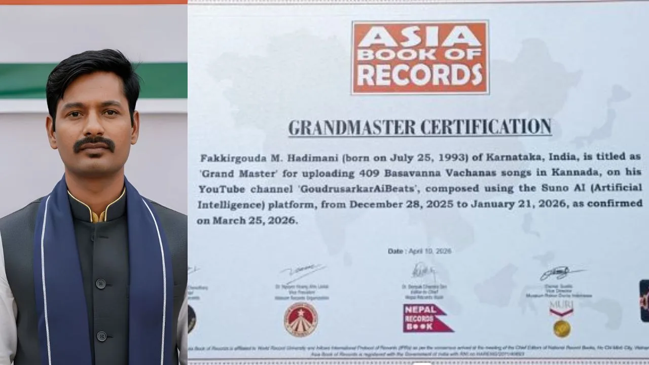 ಕೃತಕ ಬುದ್ಧಿಮತ್ತೆ (AI) ಮೂಲಕ ಬಸವಣ್ಣನವರ 432 ವಚನಗಳಿಗೆ ಸಂಗೀತ ಸಂಯೋಜನೆ ಮಾಡಿರುವ ಫಕೀರಗೌಡ ಎಂ. ಹಾದಿಮನಿ ಅವರಿಗೆ ಈಗ ‘ಏಷ್ಯಾ ಬುಕ್ ಆಫ್ ರೆಕಾರ್ಡ್ಸ್’ ಮನ್ನಣೆ ದೊರೆತಿದೆ.