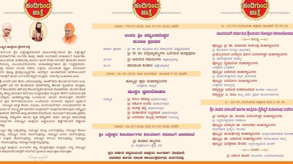 ಹಂದಿಗುಂದ ಗ್ರಾಮದ ಆರಾಧ್ಯದೇವರಾದ ಶ್ರೀ ಸಿದ್ಧೇಶ್ವರ ಮಹಾಶಿವಯೋಗಿಗಳ 50ನೇ ಜಾತ್ರಾ ಮಹೋತ್ಸವ ಹಾಗೂ ವಚನ ರಥೋತ್ಸವ ಕಾರ್ಯಕ್ರಮವು ಜನೇವರಿ 30 ಹಾಗೂ 31ರಂದು ಜರುಗುತ್ತಿದೆ.