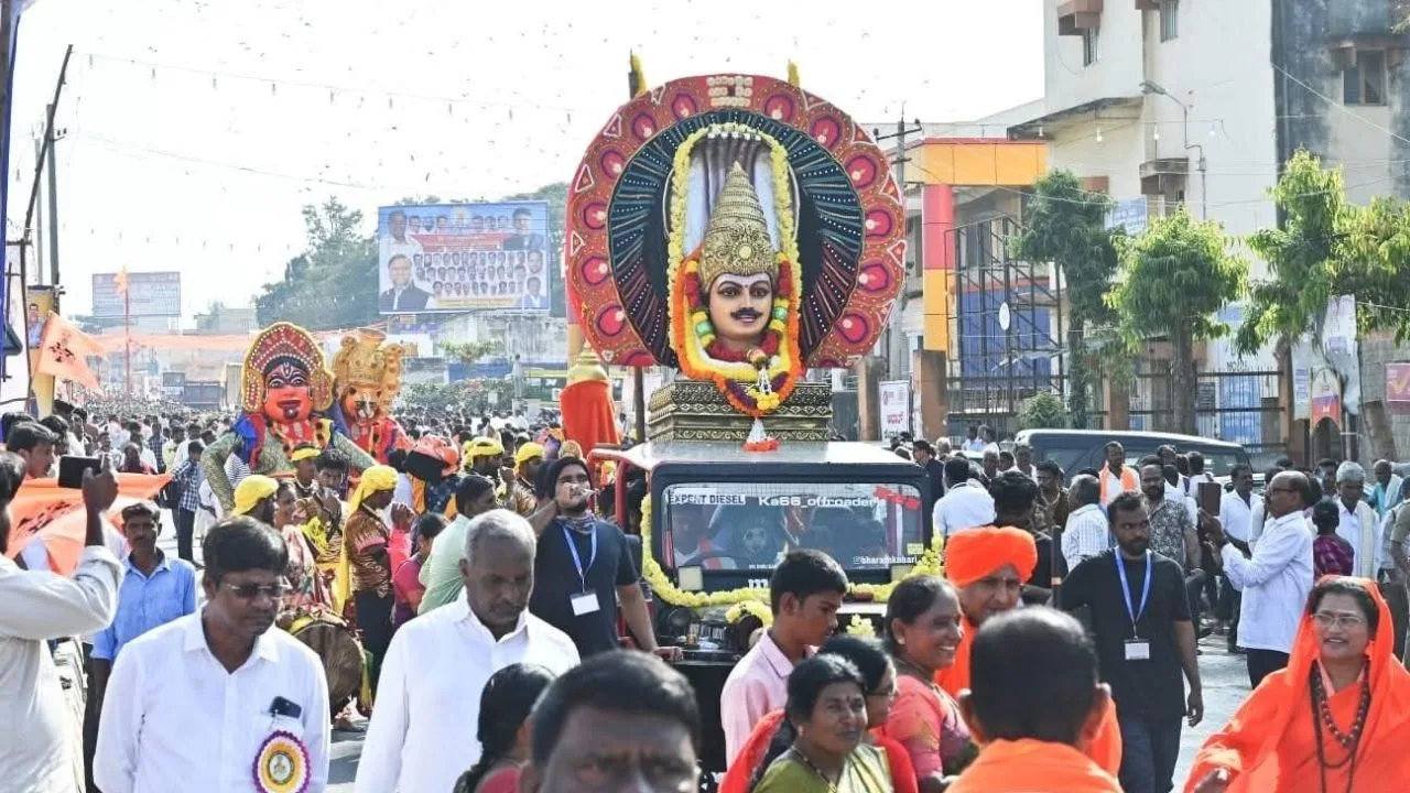 ಸಾವಿರಾರು ಭಕ್ತರು ಭಾಗವಹಿಸಿದ ಮೆರವಣಿಗೆ ವಿಜೃಂಭನೆಯಿಂದ ಜರಗಿತು.