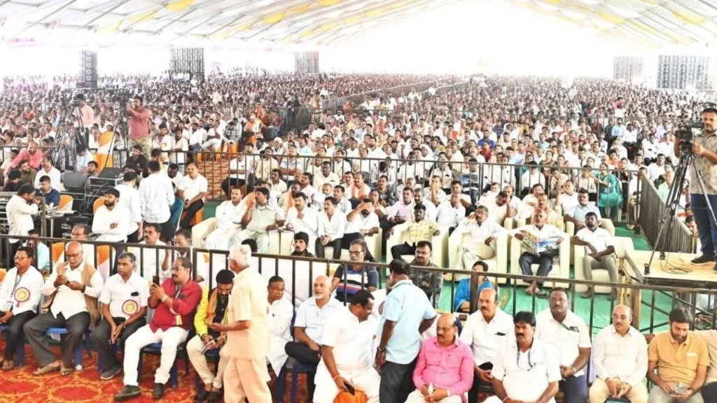 ಪಟ್ಟಣದ ವಾಲ್ಮೀಕಿ ಸಮುದಾಯ ಭವನದ ಮೈದಾನದಲ್ಲಿ ನೊಳಂಬ ಲಿಂಗಾಯತ ಸಮಾಜ ಬುಧವಾರ ಅಯೋಜಿಸಿದ್ದ 853ನೇ ಸಿದ್ದರಾಮೇಶ್ವರ ಜಯಂತಿಯಲ್ಲಿ ಸಾವಿರಾರು ಭಕ್ತರು ಸಂಭ್ರಮದಿಂದ ಭಾಗವಹಿಸಿದರು.