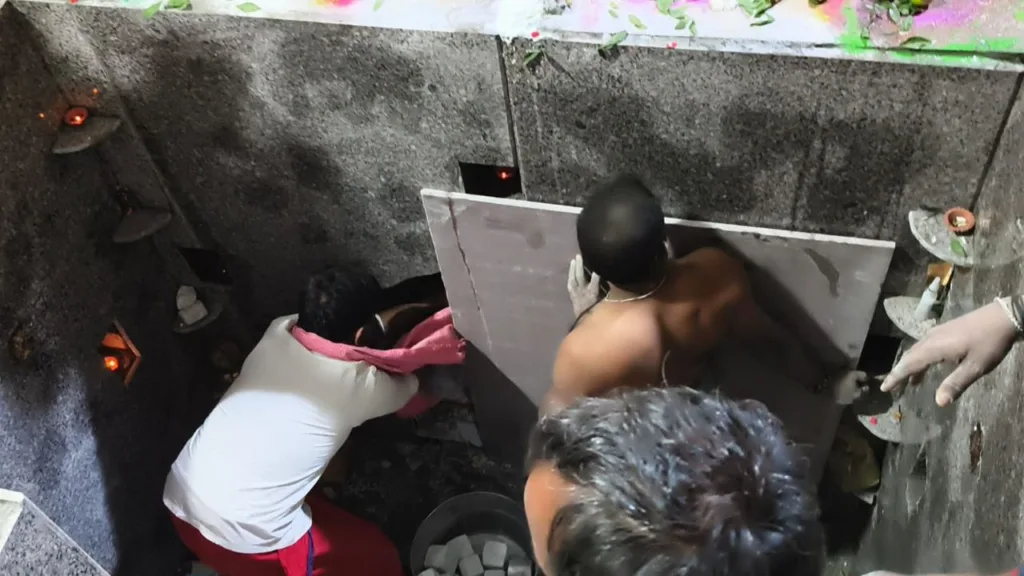ವಚನಶಿಲಾ ಮಂಟಪದಲ್ಲಿ ನಡೆದ ಅಂತಿಮ ಧಾರ್ಮಿಕ ವಿಧಿವಿಧಾನ ಕ್ರಿಯೆಗಳನ್ನು ಭಕ್ತಸಮೂಹ ಶ್ರೀಮಠದ ಹೊರಗಡೆ ಅಳವಡಿಸಲಾದ ಎಲ್.ಡಿ. ಪರದೆಯಲ್ಲಿ ವೀಕ್ಷಿಸಿದರು.