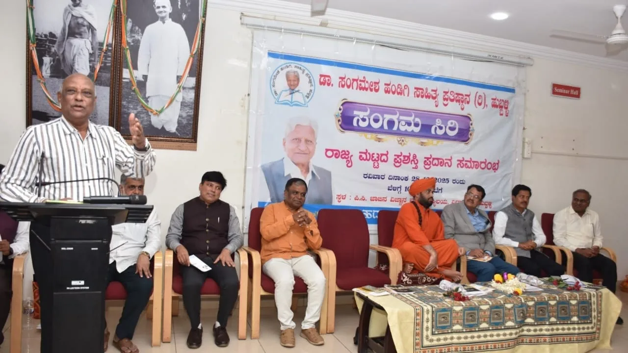ರವಿವಾರ ಇಲ್ಲಿನ ಪಿ. ಸಿ. ಜಾಬಿನ್ ವಿಜ್ಞಾನ ಮಹಾವಿದ್ಯಾಲಯದ ಸೆಮಿನಾರ್ ಹಾಲ್ ನಲ್ಲಿ ಆಯೋಜಿಸಿದ್ದ ಡಾ. ಸಂಗಮೇಶ ಹಂಡಗಿ ಸಾಹಿತ್ಯ ಪ್ರತಿಷ್ಠಾನದಿಂದ ಸಂಗಮ ಸಿರಿ ಪ್ರಶಸ್ತಿ ಸ್ವೀಕರಿಸಿ ಮಾತನಾಡಿದರು.