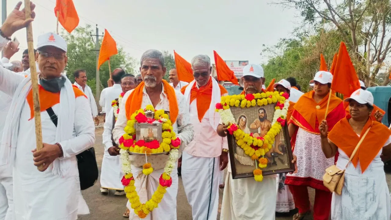 ಪಾದಯಾತ್ರೆಯಲ್ಲಿ ನೂರಾರು ಬಸವಭಕ್ತರು ಭಾಗಿ: