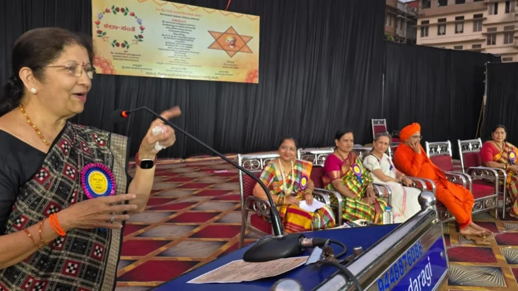 ಅವರು ಶನಿವಾರ ಲಿಂಗಾಯುತ ಮಹಿಳಾ ಸಮಾಜದಿಂದ ನಾಗನೂರು ರುದ್ರಾಕ್ಷಿಮಠದ ಎಸ್.ಜಿ.ಬಿ.ಐ.ಟಿ. ಕಾಲೇಜು ಆವರಣದಲ್ಲಿ ಮಹಿಳಾ ದಿನಾಚರಣೆಯ ಅಂಗವಾಗಿ ಹಮ್ಮಿಕೊಂಡ  “ಕಲಾ ಸಂತೆ – 2026” ಜನಪದ ಜಾತ್ರೆ ಕಾರ್ಯಕ್ರಮದ ಸಾನಿಧ್ಯ ವಹಿಸಿ ಮಾತನಾಡಿದರು.