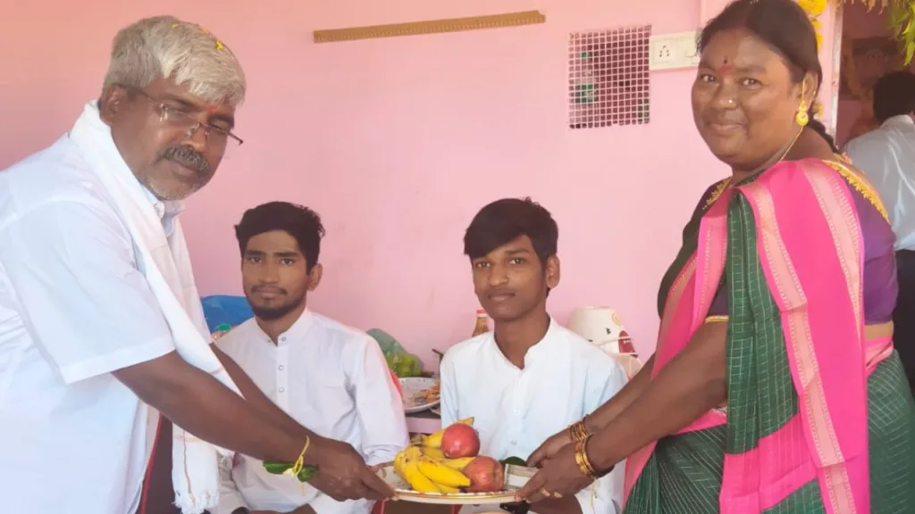 ನಾವು ಹೋದ ತಕ್ಷಣ ಎಲ್ಲರೂ ಬಂದು ಜೊತೆಯಲ್ಲಿ ಸೇರಿಕೊಂಡರು. ಬಂದಿದ್ದ ಮರಿ ದೇವರುಗಳನ್ನ ಭಕ್ತಿ ಆದರಿಂದ ಕರೆದುಕೊಂಡು ಮನೆಯ ಪ್ರವೇಶಿಸಿದರು. ಅವರೇ ಒಂದು ಕವನದಲ್ಲಿ ಹೇಳಿಕೊಂಡಂತೆ “ನಮ್ಮ ಈ ಸಣ್ಣ ಮನೆ” ಎನ್ನುವ ಶೀರ್ಷಿಕೆಯಲ್ಲಿ ಇದ್ದಂತೆ ಅದು ನಿಜವಾಗಿತ್ತು. ಸಾಧಕ ಸ್ವಾಮಿಗಳವರಿಗೆ ಕುಳ್ಳಿರಿಸಿ ಹಾರ, ಶಾಲು, ಫಲ ಪುಷ್ಪಾದಿಗಳನ್ನು ನೀಡಿ ಸತ್ಕರಿಸಿ ತನ್ನದೇ ಆದ ತನಗೆ ತೋಚಿದ ಸಣ್ಣ ಮನೆಯ ಔಚಿತ್ಯ ಕುರಿತ 28 -30 ಸಾಲಿನ ಕವನವಿರುವ ನೆನಪಿನ ಕಾಣಿಕೆ ರೆಡಿಮಾಡಿಸಿ ನೀಡಿದದ್ದಂತು ಸೋಜಿಗವೇಸರಿ …!