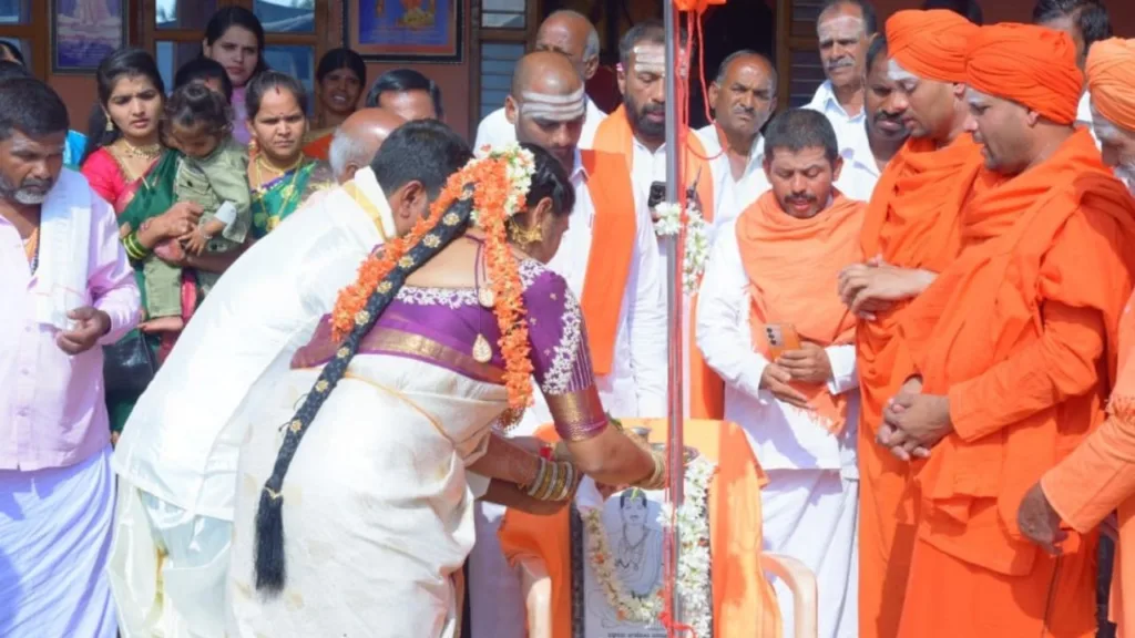 ಮೊದಲಿಗೆ ಗುರುಗಳ ಪಾದಪೂಜೆ, ಸಟಸ್ಥಲ ಧ್ವಜಾರೋಹಣ, ಲಿಂಗಪೂಜೆ ಮಾಡಿ, ರುದ್ರಾಕ್ಷಿ ಕಂಕಣ ಕಟ್ಟಿ ನಂತರ ಮಾಂಗಲ್ಯ ಧಾರಣೆ ಮಾಡಲಾಯಿತು.