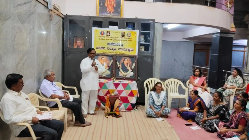 ಸ್ಥಳೀಯ ಬಾಲಲೀಲಾ ಮಹಾಂತ ಶಿವಯೋಗಿಗಳ ಗವಿಮಠದಲ್ಲಿ ಜಿಲ್ಲಾ ಶರಣ ಸಾಹಿತ್ಯ ಪರಿಷತ್ತು, ಕದಳಿ ವೇದಿಕೆ ವತಿಯಿಂದ ಈಚೆಗೆ ಹಮ್ಮಿಕೊಂಡಿದ್ದ ಮನೆ-ಮನದಲ್ಲಿ ಶರಣರ ಸಂಸ್ಕೃತಿ ಕಾರ್ಯಕ್ರಮ ಉದ್ಘಾಟಿಸಿ ಅವರು ಮಾತನಾಡಿದರು.