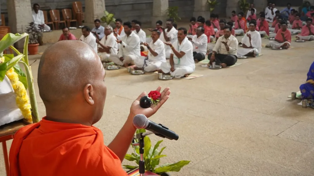 ಶ್ರೀಗಳವರು ಇಲ್ಲಿನ ಶ್ರೀ ಜಗದ್ಗುರು ಮುರುಘರಾಜೇಂದ್ರ ಬೃಹನ್ಮಠದ ಮೂಲಕರ್ತೃ ಮುರಿಗೆಯ ಶಾಂತವೀರ ಮುರುಘರಾಜೇಂದ್ರ ಮಹಾಸ್ವಾಮಿಗಳವರ ಲೀಲಾವಿಶ್ರಾಂತಿ ಸನ್ನಿಧಾನದಲ್ಲಿ ರವಿವಾರ ಶಿವರಾತ್ರಿ ಪ್ರಯುಕ್ತ ಏರ್ಪಡಿಸಿದ್ದ ಸಹಜ ಶಿವಯೋಗದ ಪ್ರಾತ್ಯಕ್ಷಿಕೆಯ ಮೂಲಕ ಚಿಂತನ ನೀಡಿದರು.