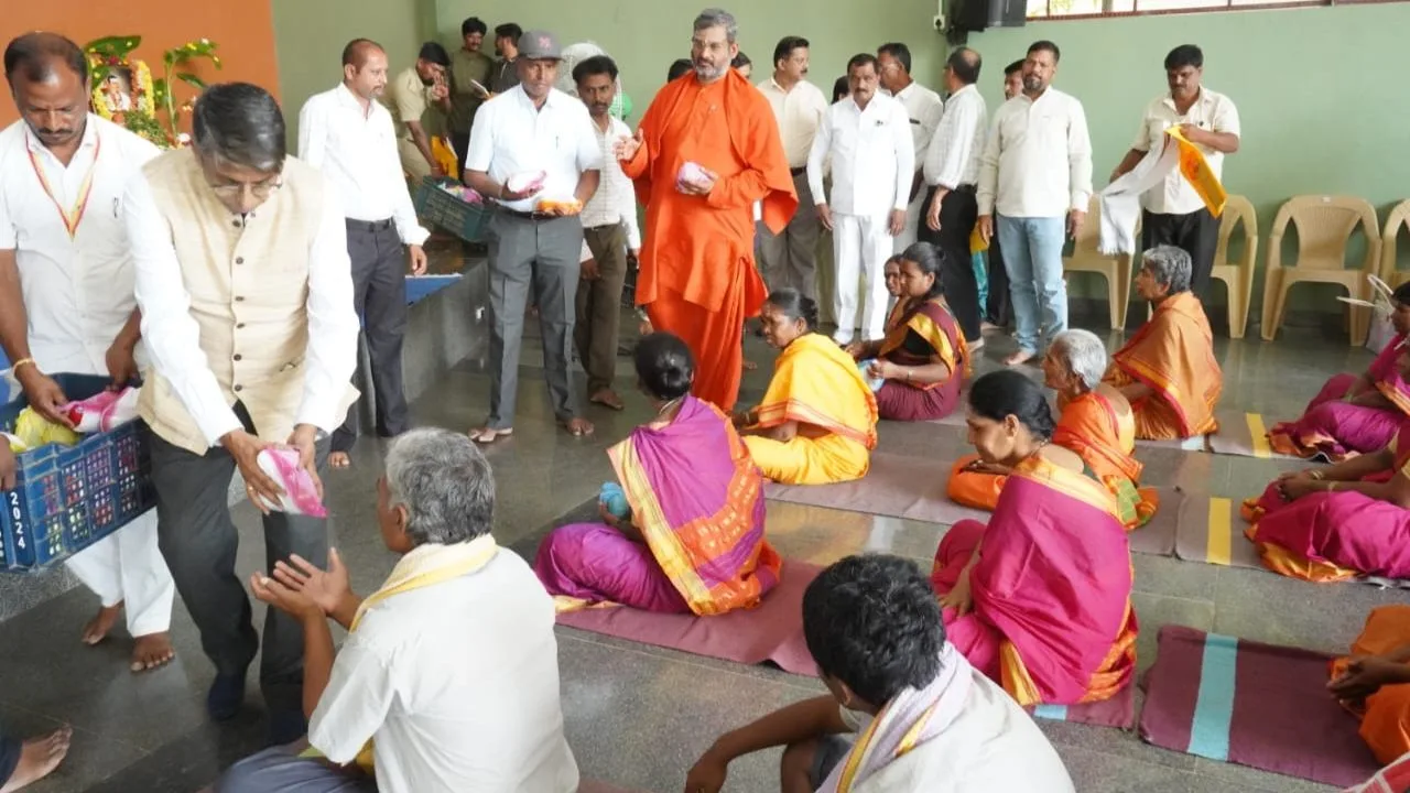 ಇದೇ ಸಂದರ್ಭದಲ್ಲಿ ಶ್ರೀಮಠದ ವತಿಯಿಂದ ನಿರಾಶ್ರಿತರಿಗೆ ಹಣ್ಣು ಹಂಪಲುಗಳನ್ನು ವಿತರಿಸಿ ಪ್ರಸಾದ ವ್ಯವಸ್ಥೆಯನ್ನು ಮಾಡಲಾಯಿತು. ಎಸ್.ಜೆ.ಎಂ.ಐ.ಟಿ.ಐ. ಕಾಲೇಜಿನ ವಿಶಾಲಾಕ್ಷಿ ಅವರು ನಿರಾಶ್ರಿತರಿಗೆ ಸಮವಸ್ತ್ರವನ್ನು ದೇಣಿಗೆಯಾಗಿ ನೀಡಿದರು.