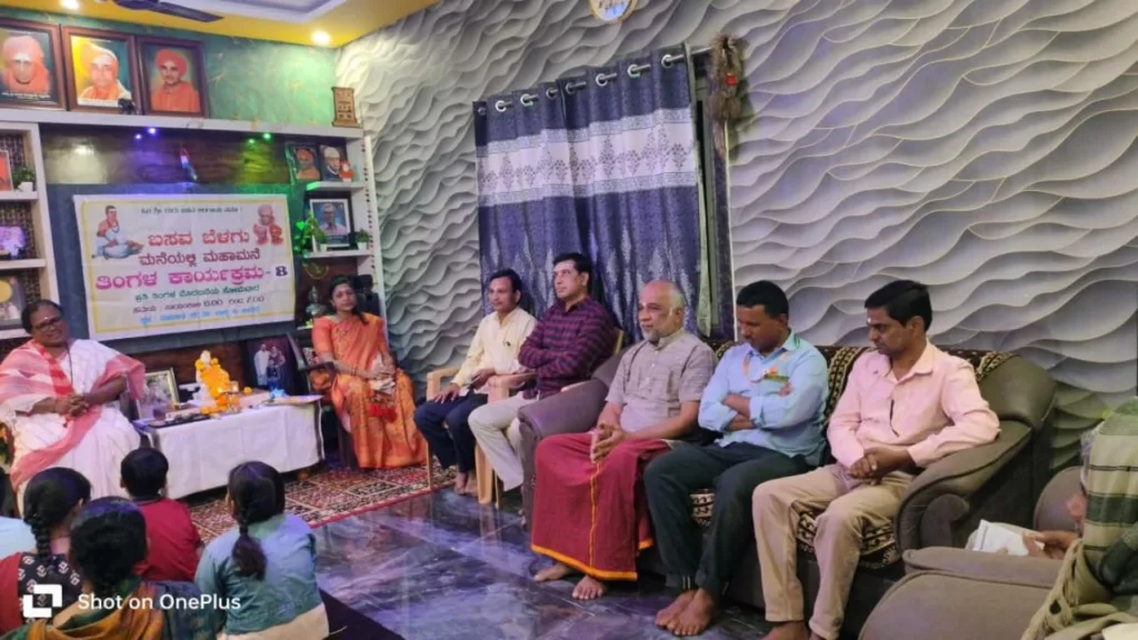 ತಾಲೂಕಿನ ತಳವಾಡ(ಕೆ) ಗ್ರಾಮದ ಶ್ರೀದೇವಿ ಶಿವಪ್ರಕಾಶ ಕುಂಬಾರ ಅವರ ಬಸವ ಬೆಳಗು ನಿವಾಸದಲ್ಲಿ ಆಯೋಜಿಸಿದ ಎಂಟನೇ ‘ಮನೆಯಲ್ಲಿ ಮಹಾಮನೆ’ ಕಾರ್ಯಕ್ರಮದ ಅಧ್ಯಕ್ಷತೆ ವಹಿಸಿ ಅವರು ಮಾತನಾಡಿದರು.