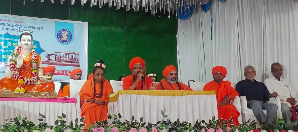 ಬಸವ ಸಂಸ್ಕೃತಿ ಅಭಿಯಾನ ಯಶಸ್ವಿಗೊಳಿಸಿದ ಬಸವ ಕಾರ್ಯಕರ್ತರನ್ನು ಅಭಿನಂದಿಸಲು ಪಟ್ಟಣದಲ್ಲಿ ಲಿಂಗಾಯತ ಮಠಾಧಿಪತಿಗಳ ಒಕ್ಕೂಟ ಆಯೋಜಿಸಿದ್ದ ಸಮಾರಂಭದ ಸಾನಿಧ್ಯವಹಿಸಿ ಮಾತನಾಡಿದರು.