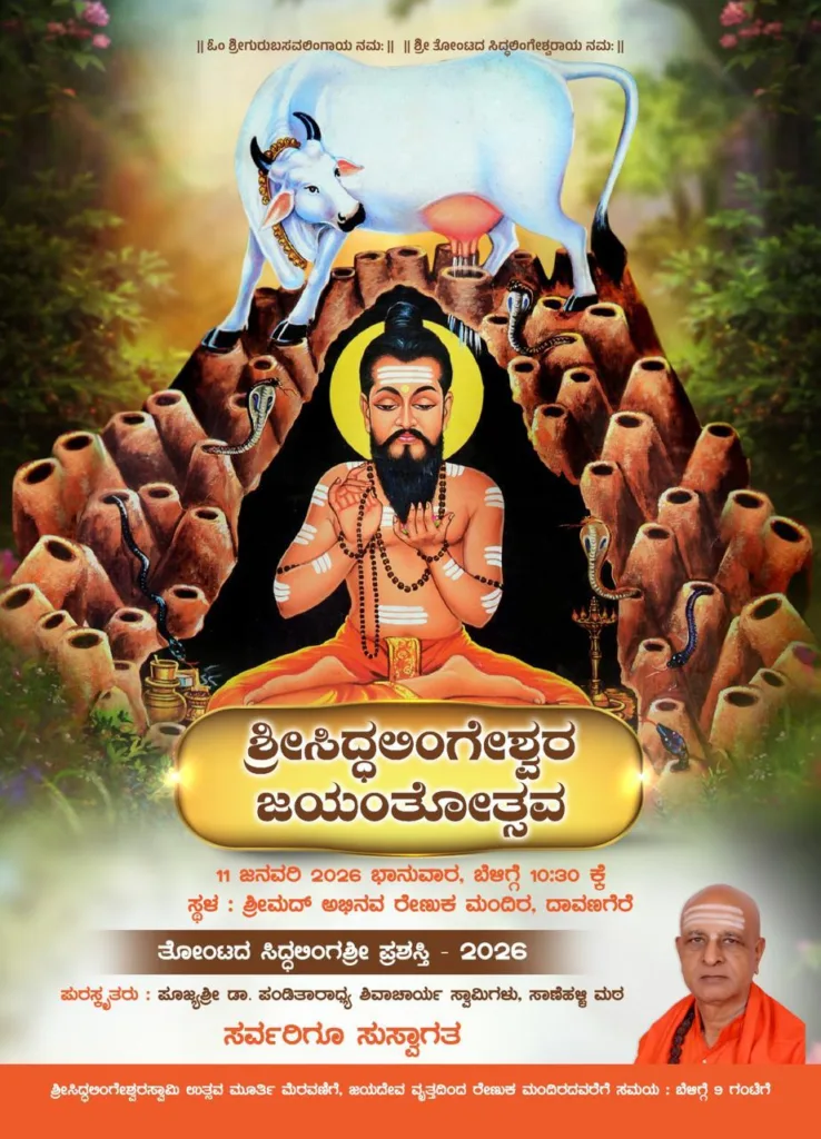 ಸುದ್ದಿಗಾರರೊಂದಿಗೆ ಮಾತನಾಡಿದ ಶ್ರೀಗಳು, ದಾವಣಗೆರೆಯ ಅಭಿನವ ರೇಣುಕ ಮಂದಿರದಲ್ಲಿ ಜ.11ರಂದು ಭಾನುವಾರ ಸಿದ್ದಲಿಂಗೇಶ್ವರ ಜಯಂತ್ಯುತ್ಸವ ಸಮಿತಿ ಹಾಗೂ ಭಕ್ತರ ಸಹಕಾರದಲ್ಲಿ ಬೆಳಿಗ್ಗೆ 9ಗಂಟೆಗೆ ಶ್ರೀ ಸಿದ್ದಲಿಂಗೇಶ್ವರ ಉತ್ಸವಮೂರ್ತಿ ಮೆರವಣಿಗೆ ಹಾಗೂ 10.30ಕ್ಕೆ ತೋಂಟದಸಿದ್ದಲಿಂಗ ಶ್ರೀ ಪ್ರಶಸ್ತಿ ಪ್ರದಾನ ಅದ್ಧೂರಿ ಸಮಾರಂಭ ನೆರವೇರಿಸಲಾಗುವುದು ಎಂದರು.