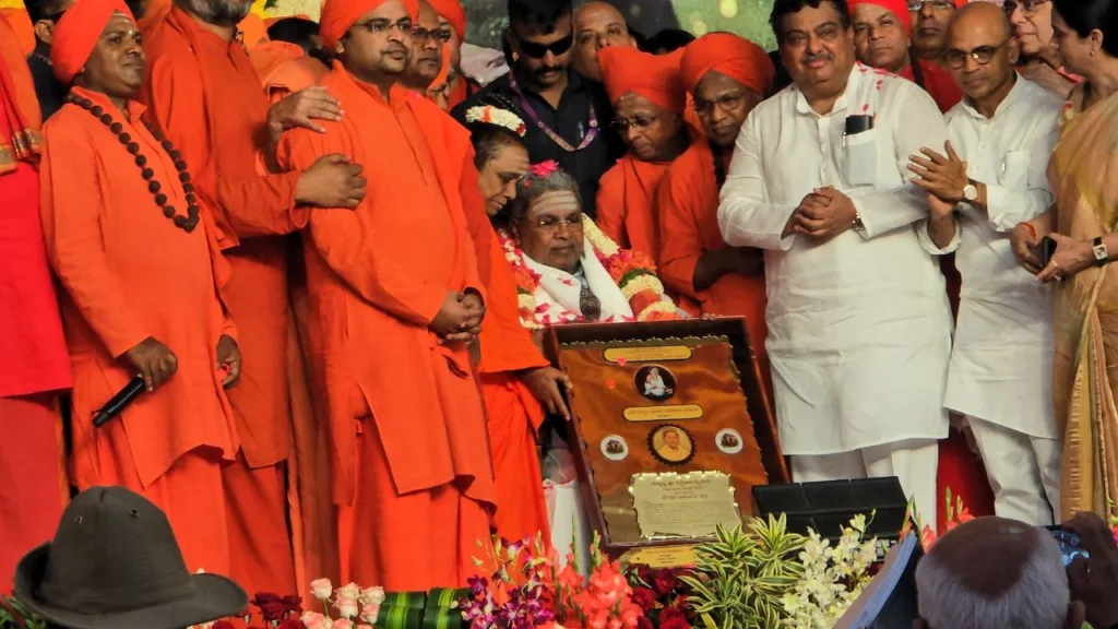ಮುಖ್ಯಮಂತ್ರಿ ಸಿದ್ದರಾಮಯ್ಯ ಅವರನ್ನು ನಾಡಿನ ಪರವಾಗಿ, ಲಿಂಗಾಯತ ಮಠಾಧಿಪತಿಗಳ ಒಕ್ಕೂಟದ ವತಿಯಿಂದ ಸನ್ಮಾನ ನಡೆಯಿತು.