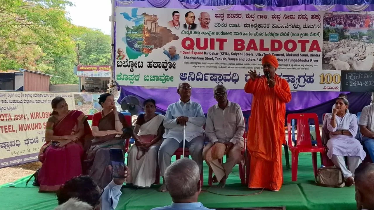 “ಬಲ್ಡೋಟ ಹಟಾವ್ ಕೊಪ್ಪಳ ಜಿಲ್ಲಾ ಬಚಾವ್” 175ನೇ ದಿನದ ಧರಣಿ ಸತ್ಯಾಗ್ರಹದಲ್ಲಿ ಭಾಗವಹಿಸಿ ಮಾತನಾಡಿದೆ. ಈ ಕಾರ್ಖಾನೆಗಳ ವಿಷ ಅನಿಲ ಉಗುಳುವಿಕೆಯಿಂದ ಸುತ್ತಲಿನ ಗ್ರಾಮಸ್ಥರ ಮತ್ತು ಪಶು ಪ್ರಾಣಿ ಪಕ್ಷಿಗಳ ಪರಿಸ್ಥಿತಿ ಅತ್ಯಂತ ಭೀಕರವಾಗಿದೆ.