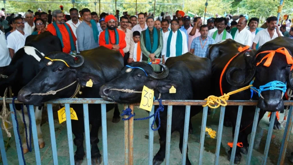 ಹಸುವಿಗೆ ಮೇವು ತಿನ್ನಿಸುವುದರ ಮೂಲಕ ಸಾಕುಪ್ರಾಣಿಗಳ ಪ್ರದರ್ಶನವನ್ನು ಶ್ರೀ ಜಗದ್ಗುರು ಮುರುಘರಾಜೇಂದ್ರ ಬೃಹನ್ಮಠ ಹಾಗೂ ಎಸ್.ಜೆ.ಎಂ. ವಿದ್ಯಾಪೀಠದ ಆಡಳಿತ ಮಂಡಳಿಯ ಅಧ್ಯಕ್ಷರಾದ ಶ್ರೀ ಶಿವಯೋಗಿ ಕಳಸದ ಅವರು ಉದ್ಘಾಟಿಸಿದರು.