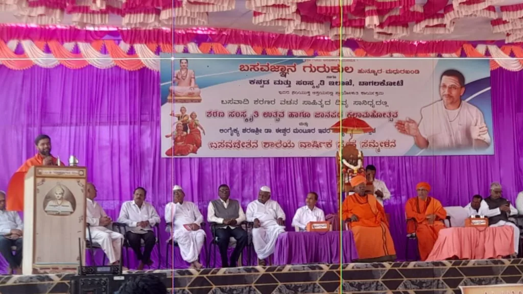 ತಾಲ್ಲೂಕಿನ ಹುನ್ನೂರ- ಮಧುರಖಂಡಿ ಗ್ರಾಮಗಳ ಬಸವಜ್ಞಾನ ಗುರುಕುಲ ಹಾಗೂ ಕನ್ನಡ ಮತ್ತು ಸಂಸ್ಕೃತಿ ಇಲಾಖೆಯ ಆಶ್ರಯದಲ್ಲಿ ಬಸವಾದಿ ಶರಣರ ವಚನ ಸಾಹಿತ್ಯದ ಸಾನಿಧ್ಯದಲ್ಲಿ ಮಂಗಳವಾರ ಬಸವಜ್ಞಾನ ಗುರುಕುಲದಲ್ಲಿ ನಡೆದ ಶರಣಸಂಸ್ಕೃತಿ ಉತ್ಸವ, ಜಾನಪದ ಕಲಾಮಹೋತ್ಸವ, ಪ್ರಶಸ್ತಿ ಪ್ರದಾನ ಹಾಗೂ ಲಿಂ. ಈಶ್ವರ ಮಂಟೂರ ಶರಣರ 4ನೇ ಸ್ಮರಣೋತ್ಸವ ಸಮಾರಂಭದ ಸಾನಿಧ್ಯ ವಹಿಸಿ ಮಾತನಾಡಿದರು.