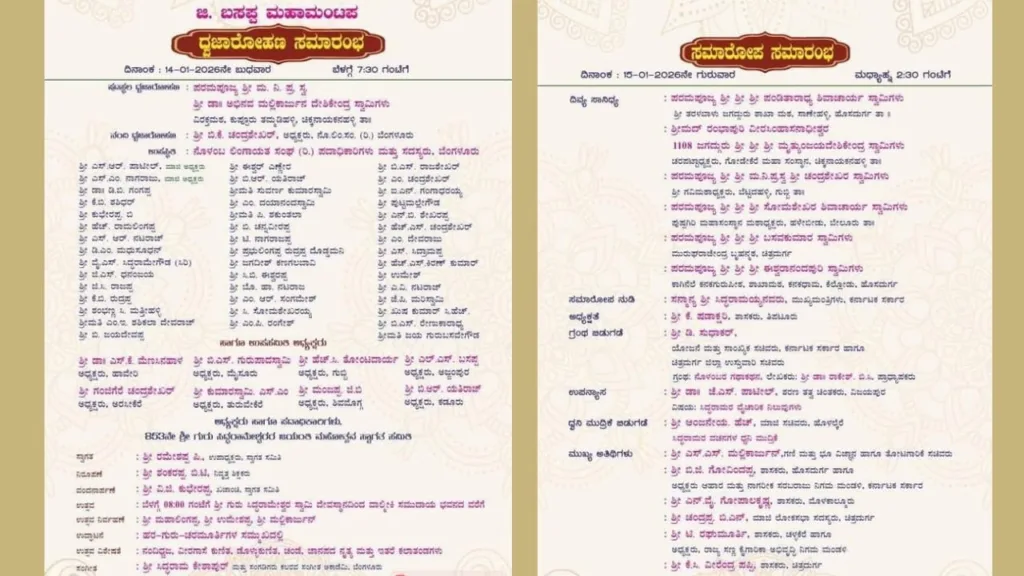 ಶ್ರೀಗುರು ಸಿದ್ದರಾಮೇಶ್ವರರ 853ನೇ ಜಯಂತಿ ಮಹೋತ್ಸವ, ವಾಲ್ಮೀಕಿ ಮೈದಾನದ ಜಿ. ಬಸಪ್ಪ ಮಹಾಮಂಟಪದಲ್ಲಿ ಜನವರಿ 14 ಮತ್ತು 15ರಂದು ನಡೆಯಲಿದೆ.