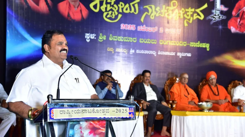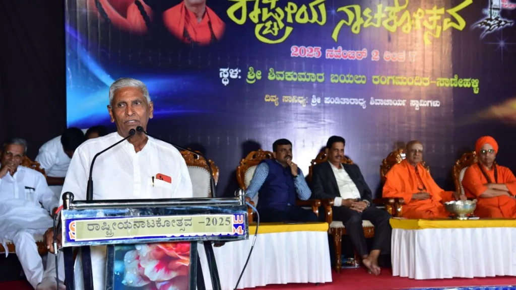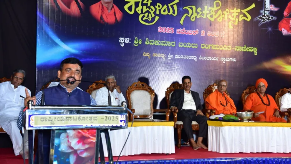 ತಾಲ್ಲೂಕಿನ ಸಾಣೇಹಳ್ಳಿಯಲ್ಲಿ ಆಯೋಜಿಸಿರುವ ರಾಷ್ಟ್ರೀಯ ನಾಟಕೋತ್ಸವ ಅಂಗವಾಗಿ ಬುಧವಾರ ಸಂಜೆ ನಡೆದ ಸಮಾರಂಭದ ಸಾನ್ನಿಧ್ಯ ವಹಿಸಿ ಅವರು ಮಾತನಾಡಿದರು.