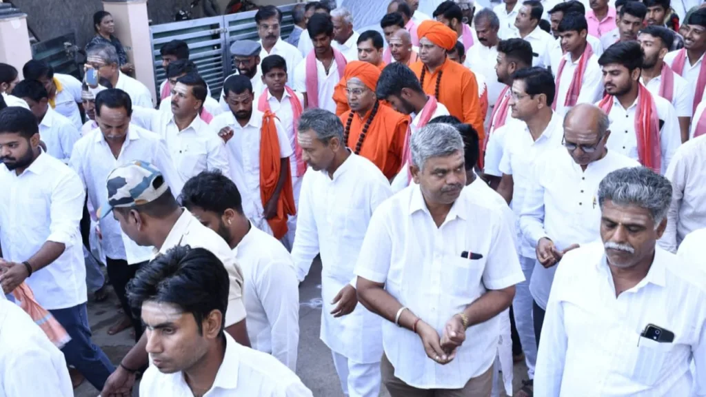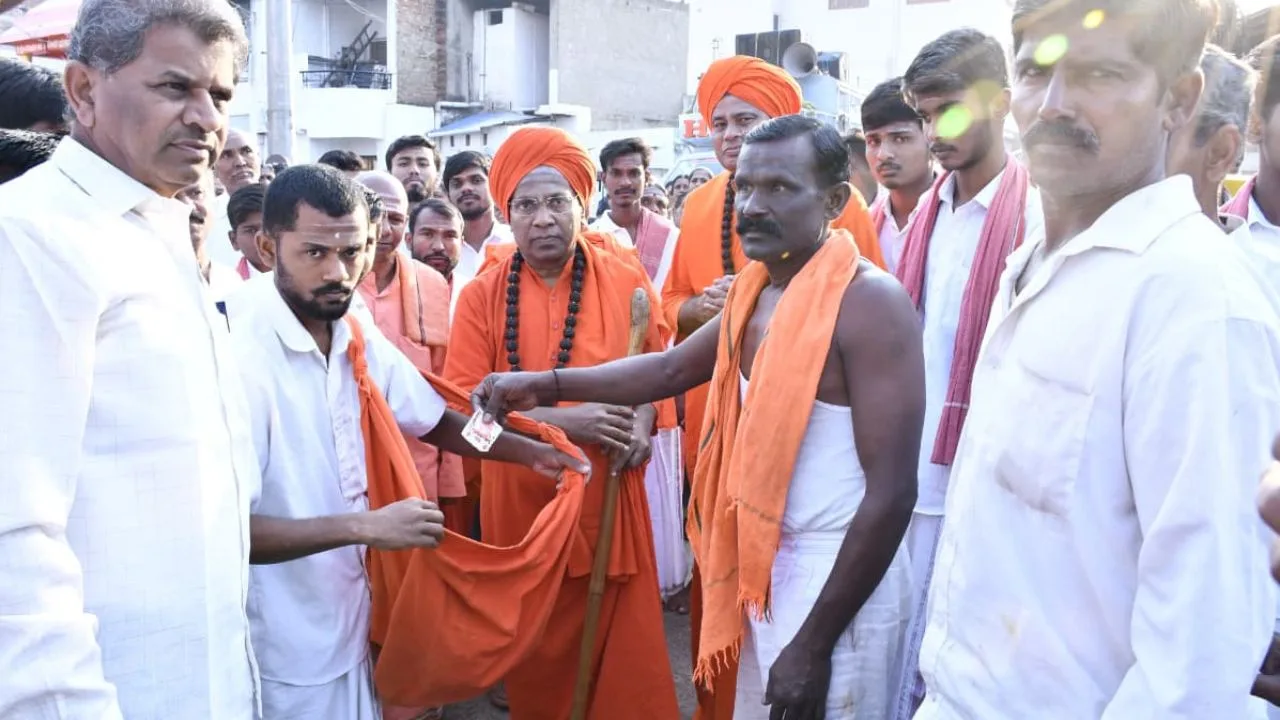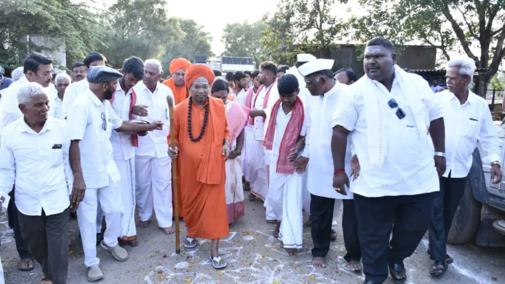 ನೂರಾರು ಭಕ್ತರು ಶ್ರೀಗಳೊಂದಿಗೆ ಪಾದಯಾತ್ರೆಯಲ್ಲಿ ಹೆಜ್ಜೆಹಾಕಿದರು.