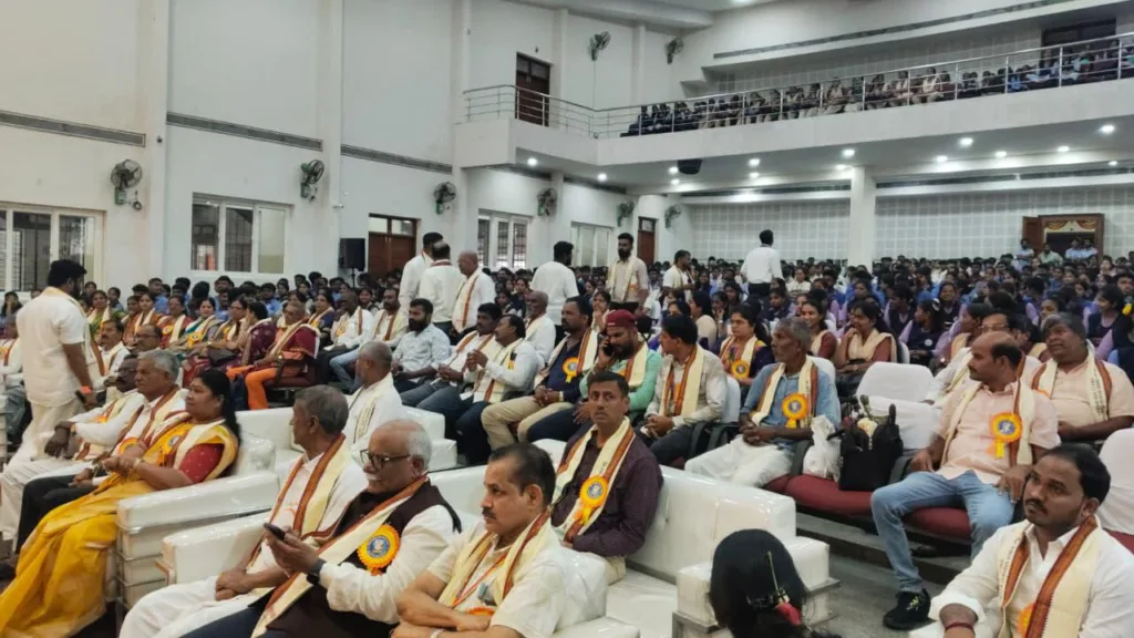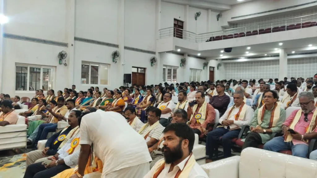 ಪುರಭವನದಲ್ಲಿ ಸಾರ್ವಜನಿಕ ಸಮಾವೇಶ ಆರಂಭ. ಪೂಜ್ಯರು, ಗಣ್ಯರು ಜ್ಯೋತಿ ಬೆಳಗಿಸಿ ಸಮಾವೇಶ ಉದ್ಘಾಟಿಸಿದರು.