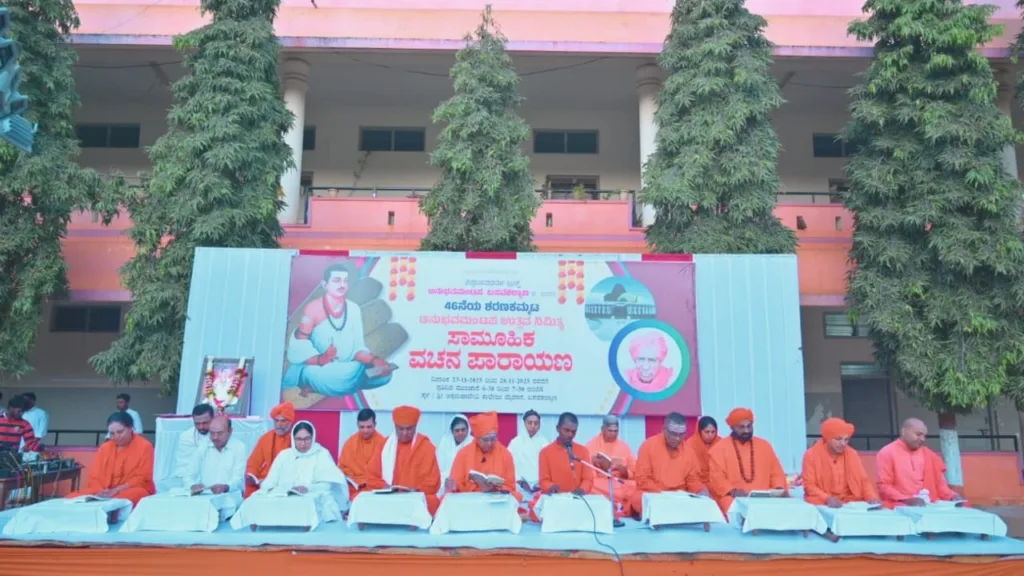 ಬಸವಕಲ್ಯಾಣದಲ್ಲಿ ನಡೆಯುವ ೪೬ನೆಯ ಶರಣ ಕಮ್ಮಟ ಹಾಗೂ ಅನುಭವಮಂಟಪ ಉತ್ಸವ-೨೦೨೫ ನಿಮಿತ್ಯ ದಿ: ೨೨- ೨೮ನವೆಂಬರ್ ರವರೆಗೆ ಏಳು ದಿನಗಳ ಕಾಲ ನಡೆಯುವ ಸಾಮೂಹಿಕ ವಚನ ಪಾರಾಯಣದ ಉದ್ಘಾಟನೆ ನಾಡೋಜ ಪೂಜ್ಯ ಶ್ರೀ ಡಾ.ಬಸವಲಿಂಗ ಪಟ್ಟದ್ದೇವರ ದಿವ್ಯ ಸಾನಿಧ್ಯದಲ್ಲಿ ನಡೆಯಿತು.