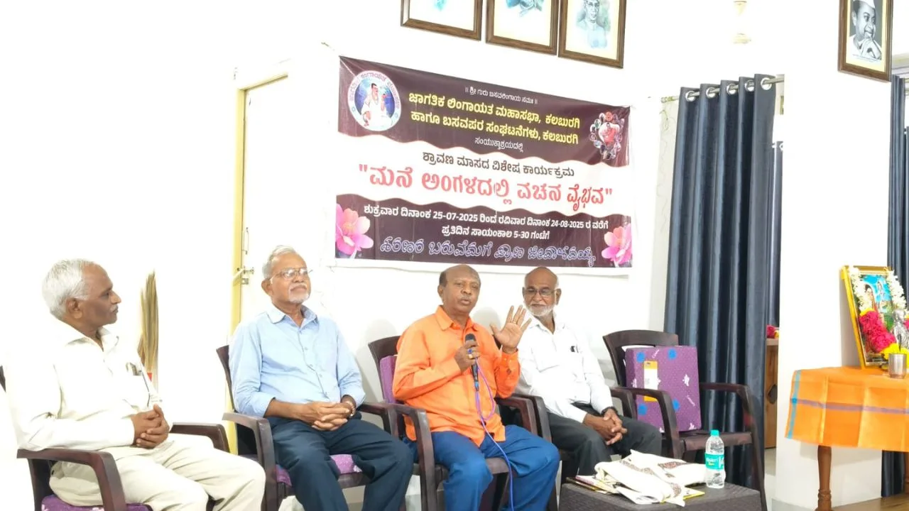 ಜಾಗತಿಕ ಲಿಂಗಾಯತ ಮಹಾಸಭಾ ಜಿಲ್ಲಾ ಘಟಕದ ವತಿಯಿಂದ ಶ್ರಾವಣ ಮಾಸದ ನಿಮಿತ್ತ ಪ್ರೊ. ಎಸ್.ಎಲ್. ಪಾಟೀಲರ ಅಮೃತ ಪುಸ್ತಕಾಲಯದಲ್ಲಿ ಆಯೋಜಿಸಿದ್ದ ಮನೆಯಂಗಳದಲ್ಲಿ ವಚನ ವೈಭವ ಕಾರ್ಯಕ್ರಮದಲ್ಲಿ ‘ವಚನ ಸಾಹಿತ್ಯದಲ್ಲಿ ಮೌಲ್ಯಗಳು’ ವಿಷಯ ಕುರಿತು ಮಾತನಾಡಿದ ಅವರು, ಶರಣರು ಸಮಾಜ ಚಿಕಿತ್ಸಕ ಬುದ್ಧಿಯುಳ್ಳವರಾಗಿದ್ದರು. ವಚನಗಳು ಆತ್ಮಸಾಕ್ಷಿ ಮನಸ್ಸಾಕ್ಷಿಯಾಗಿ ನುಡಿದ ನುಡಿಗಳು. ನಡೆ ನುಡಿ ಒಂದಾಗಿರಬೇಕು ಅಂದಾಗ ಅವು ವಚನಗಳಾಗುತ್ತವೆ ಇಲ್ಲದಿದ್ದರೆ ರಚನೆಗಳಾಗಿ ಉಳಿಯುತ್ತವೆ ಎಂದು ಅವರು ಹೇಳಿದರು.
