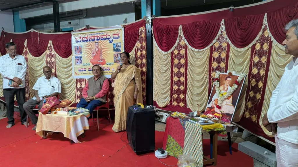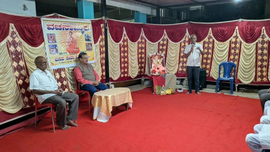 ಬಸವ ನಗರದ ಬಸವ ಸೇವಾ ಸಮಿತಿಯ ಮಾಸಿಕ ೬೩ನೇ ವಚನಾಮೃತ ಕಾರ್ಯಕ್ರಮ ರಾಮಯ್ಯ ರೆಡ್ಡಿ ಕಾಲೋನಿಯ ಶರಣ ದಂಪತಿಗಳಾದ  ಶೋಭಾ ಮತ್ತು ಬಿ. ಶಿವಶಂಕರ ರೆಡ್ಡಿ ಅವರ ನಿವಾಸದಲ್ಲಿ ಭಾನುವಾರ ನಡೆಯಿತು.